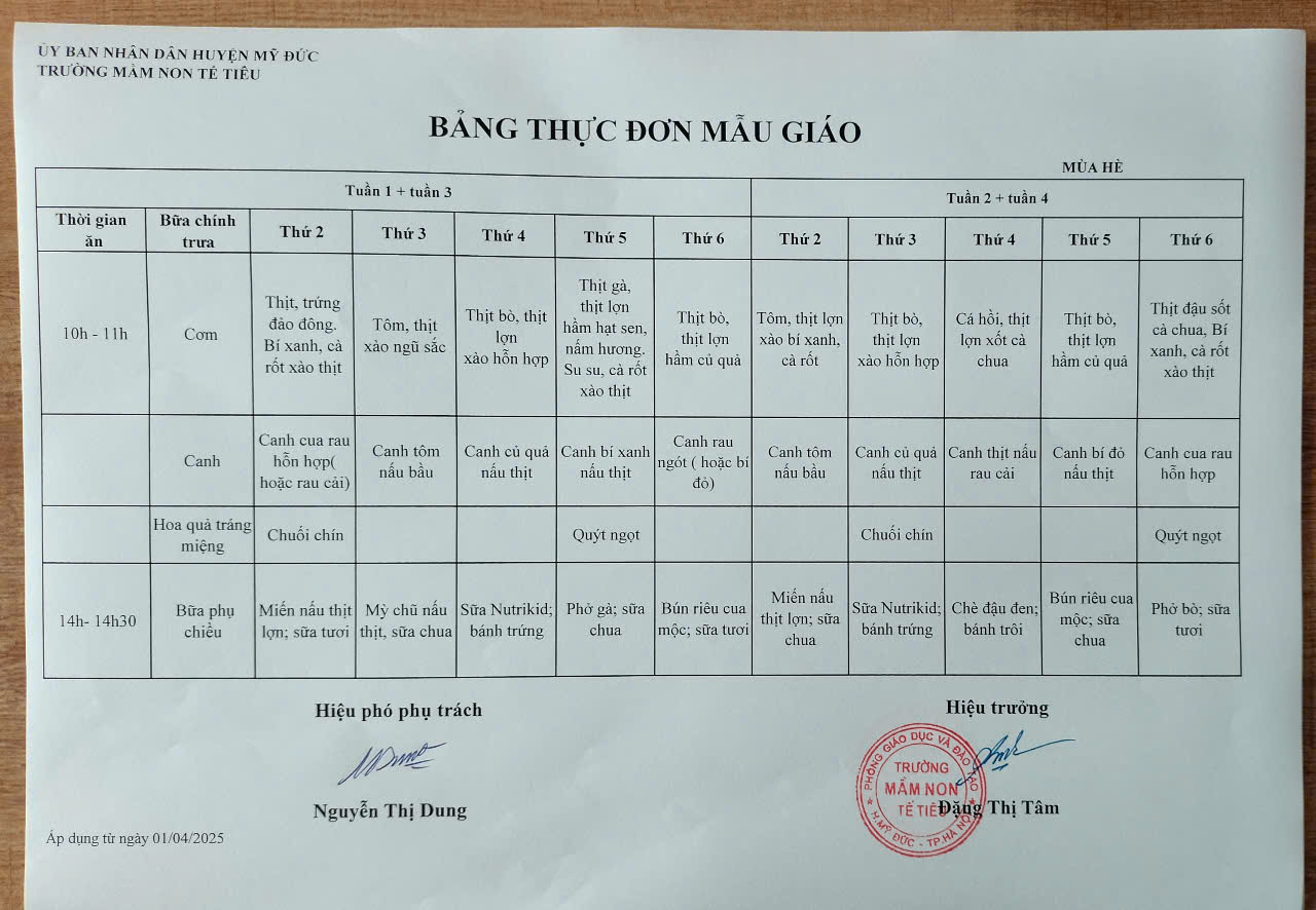 Lượt xem:95 THỰC ĐƠN MÙA HÈ (Mẫu giáo) Chia s? Tải về Thông tin tài liệu THỰC ĐƠN MÙA HÈ (Mẫu giáo) Thực đơn cho trẻ mẫu giáo năm học 2024-2025