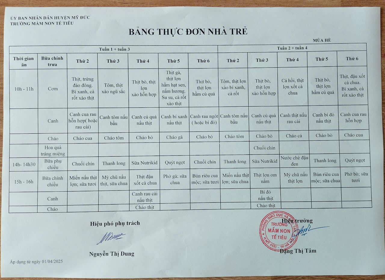 Lượt xem:53 THỰC ĐƠN MÙA HÈ (Nhà trẻ) Chia s? Tải về Thông tin tài liệu THỰC ĐƠN MÙA HÈ (Nhà trẻ) Thực đơn mùa hè của trẻ năm học 2024 - 2025